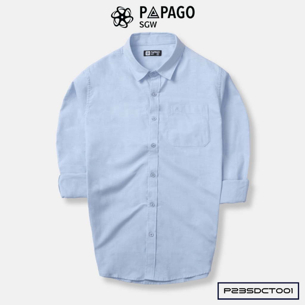 Áo sơ mi nam trung niên vải Oxford trơn cao cấp tay dài PAPAGO túi thêu logo – P23SDCT001