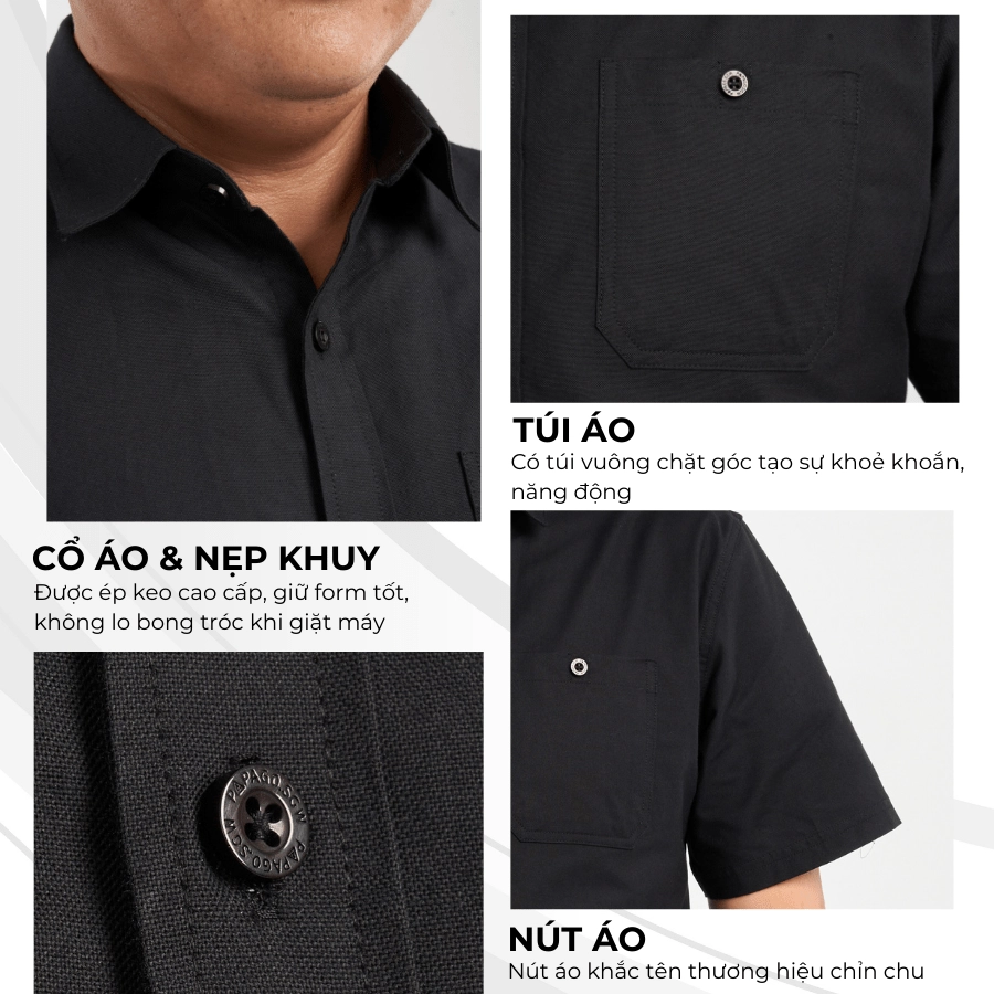 – Tên sản phẩm: Áo sơ mi nam trung niên PAPAGO vải oxford tay ngắn lai bầu – P24SNCT001