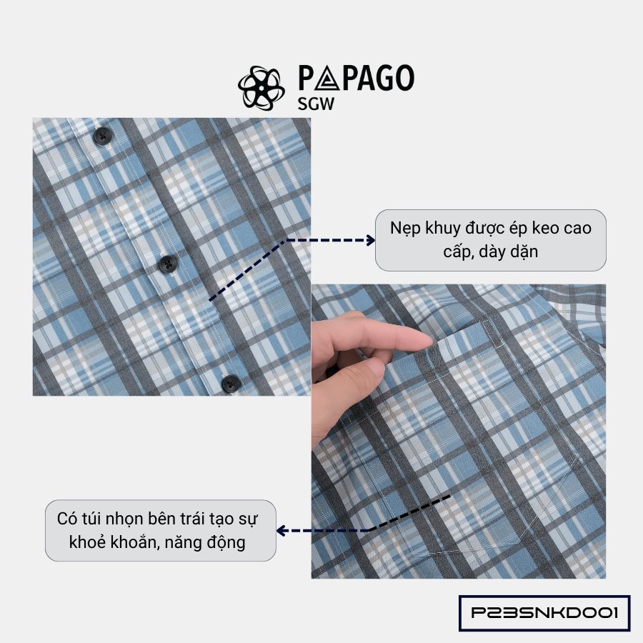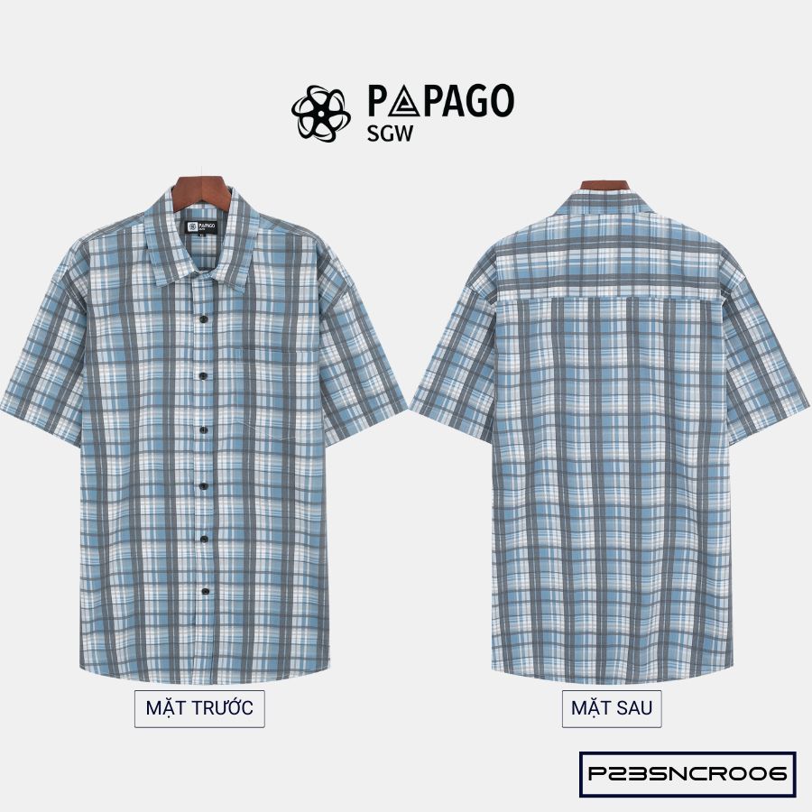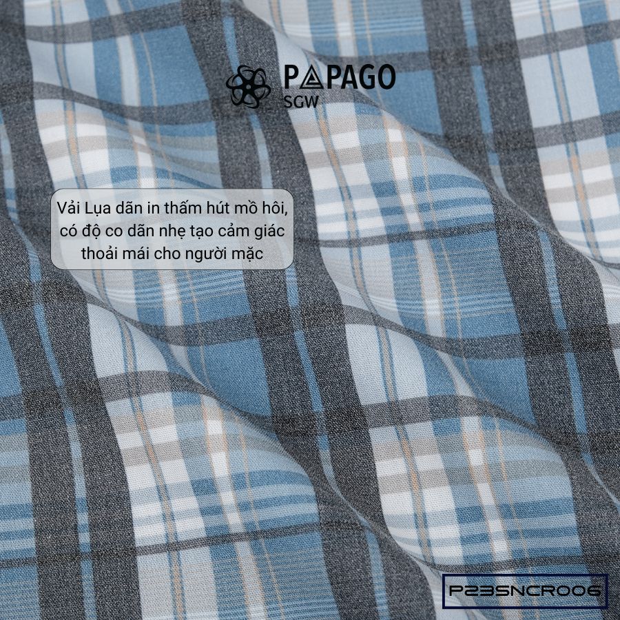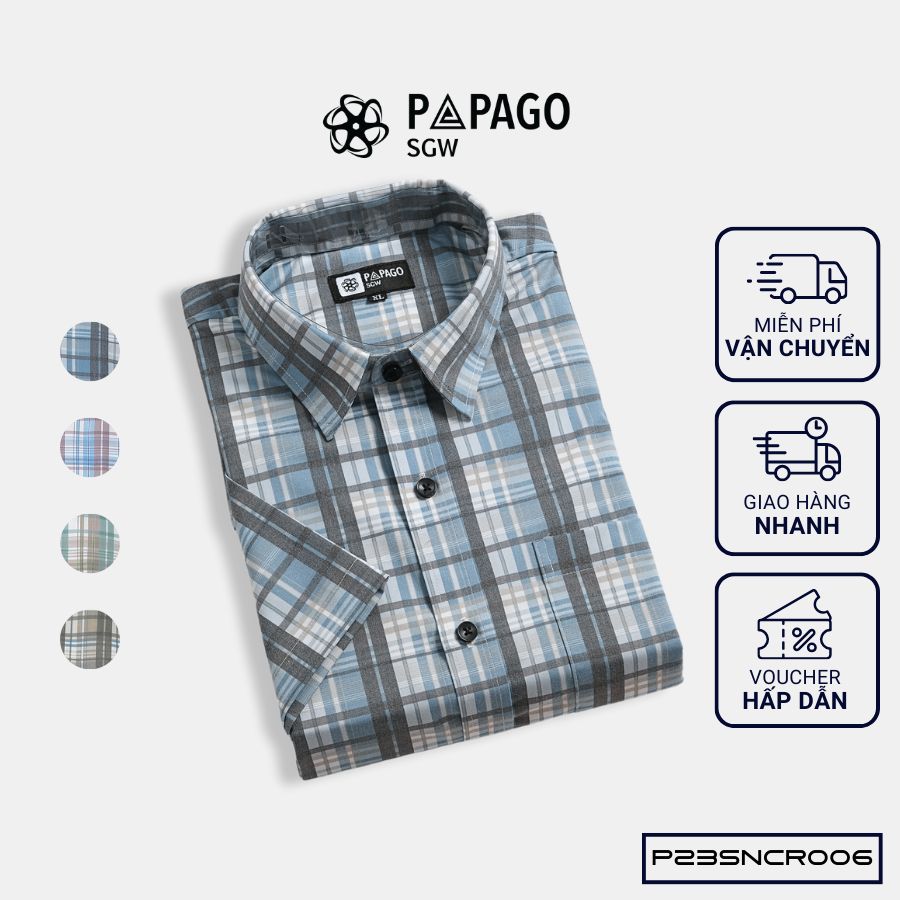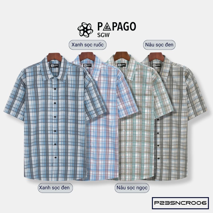 – Tên sản phẩm: Áo sơ mi nam trung niên PAPAGO cao cấp tay ngắn lai bầu vải lụa in caro – P23SNCR006