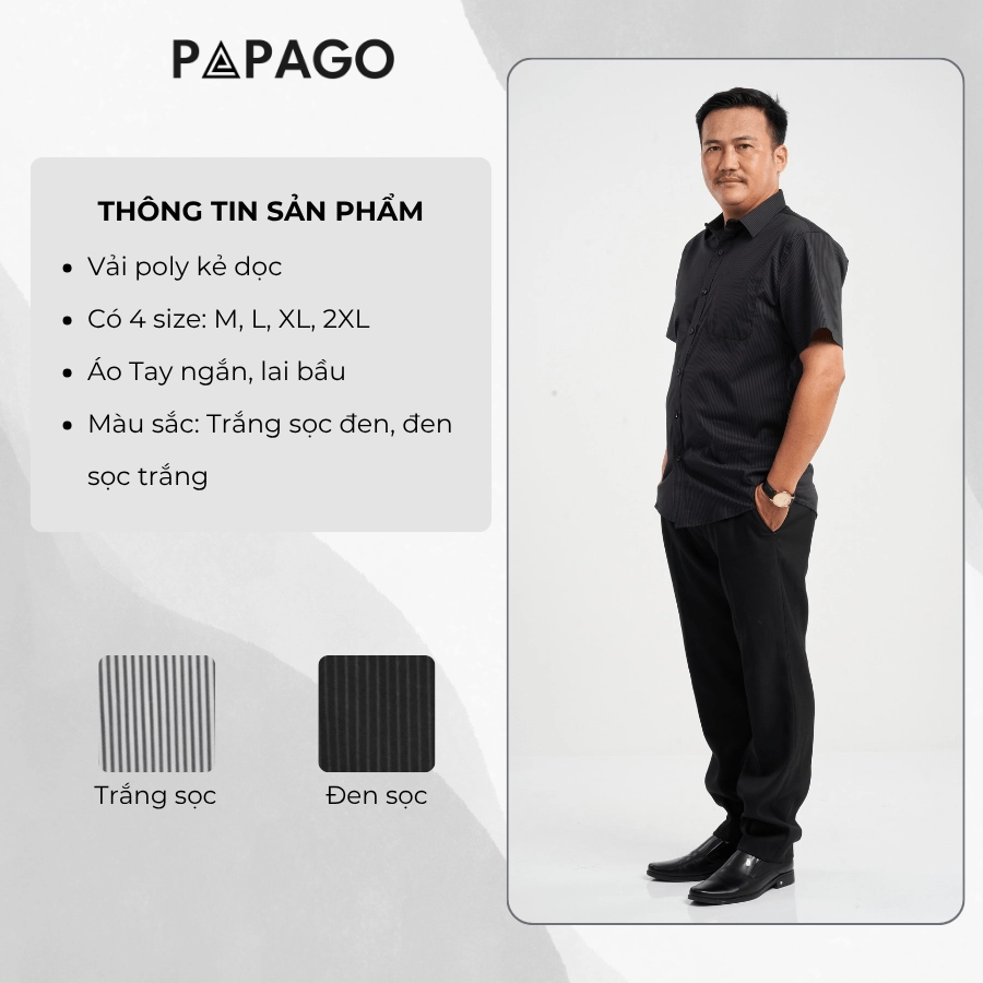 – Tên sản phẩm: Áo sơ mi nam trung niên PAPAGO tay ngắn lai bầu họa tiết sọc nhí – P23SNKD002