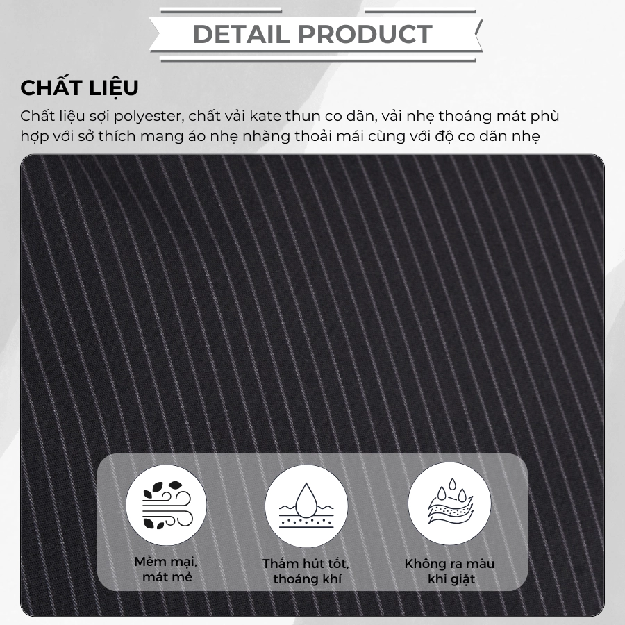 – Chất liệu sợi polyester, chất vải kate thun co dãn, vải nhẹ thoáng mát phù hợp với sở thích mang áo nhẹ nhàng thoải mái cùng với độ co dãn nhẹ.