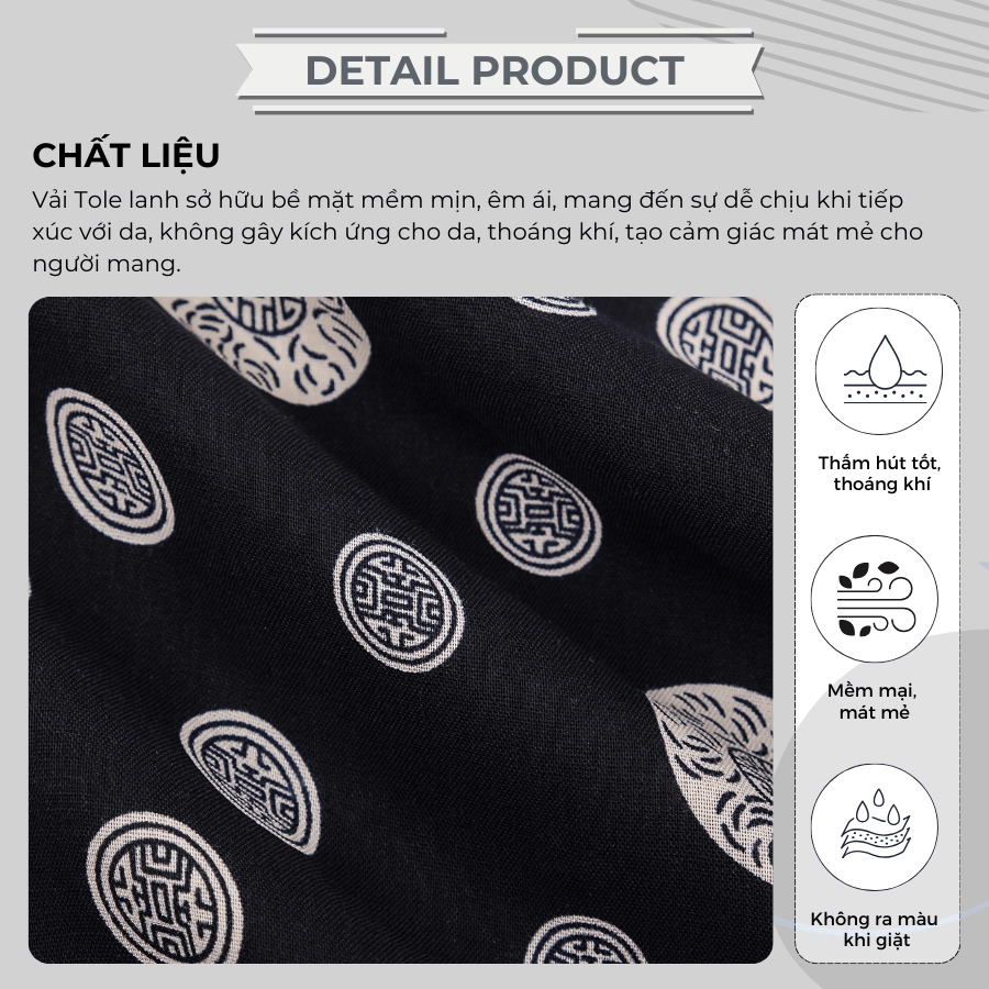 – Chất liệu vải: Chất vải Tole sở hữu bề mặt mềm mịn, êm ái, mang đến sự dễ chịu khi tiếp xúc với da, không gây kích ứng cho da, thoáng khí, tạo cảm giác mát mẻ cho người mặc.