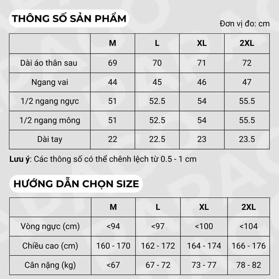 – Size áo còn phụ thuộc vào các yếu tố khác như vai, vòng ngực, vòng bụng, bắp tay. Quý khách vui lòng xem kĩ thông số sản phẩm hoặc nhắn tin trực tiếp để được hỗ trợ nếu có thắc mắc.