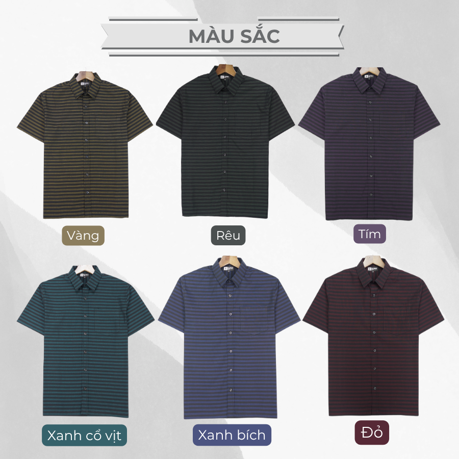 – Tên sản phẩm: Áo Sơ Mi Nam Trung Niên Tay Ngắn Lai Ngang PAPAGO Cao Cấp Cotton Kẻ Ngang Form Rộng Thoải Mái P23SNKN001