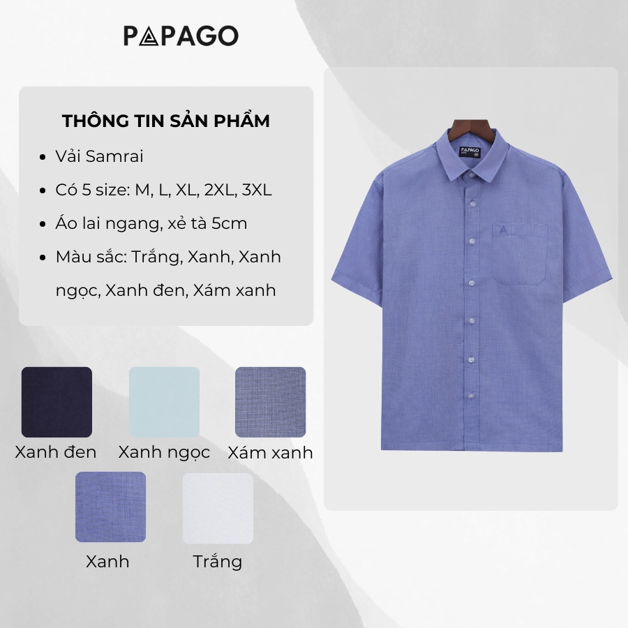 – Tên sản phẩm: Áo sơ mi PAPAGO nam Trung niên vải samrai tay ngắn lai ngang – P25SNTT001