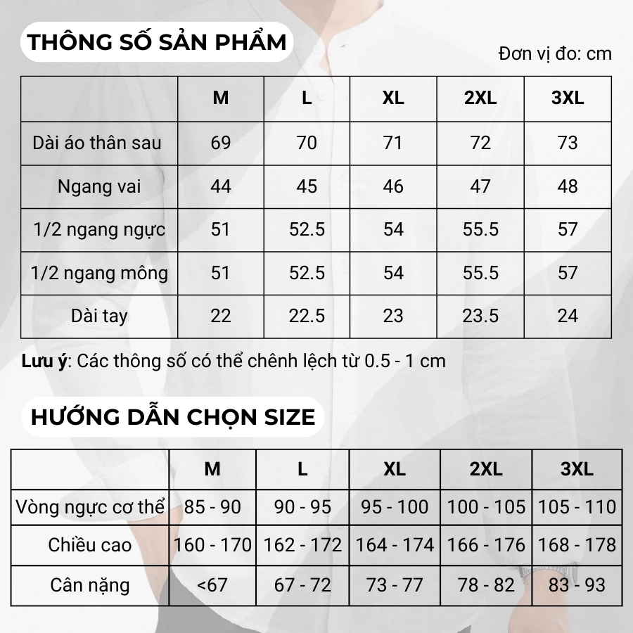 – Size áo còn phụ thuộc vào các yếu tố khác như vai, vòng ngực, vòng bụng, bắp tay. Quý khách vui lòng xem kĩ thông số sản phẩm hoặc nhắn tin trực tiếp để được hỗ trợ nếu có thắc mắc.